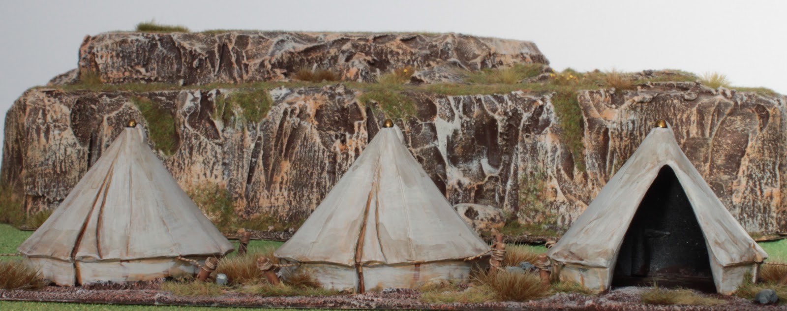 A tentative (sorry, just couldn't resist!) first post for February and after a month spent completing projects in the Crimea it is time to switch focus and return, once again, to the Anglo-Zulu war. I had ordered up these Renedra bell tents some time ago, but was a little disappointed when they arrived as I felt they were a tad small. Recently, however, I have seen some wonderful examples of these 'plastic pitched pavilions' (take a look at Stuart's camp at 'Dust, Tears & Dice' for example) and decided it was past time to get mine painted.