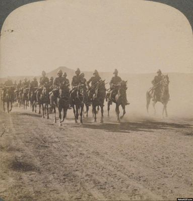 Although my viewer came with a variety of slides it was the volume imaginatively entitled ‘The South African War Through the Stereoscope' that piqued my curiosity. Here were thirty-six slides depicting events in the Boer War and published by Underwood & Underwood. It is clear that there is an element of sensationalism to the images, many of which will have been reconstructed for the benefit of the camera, but they do provide an invaluable resource from the point of view of uniforms, equipment and even tactics of the British Army at the turn of the twentieth century.